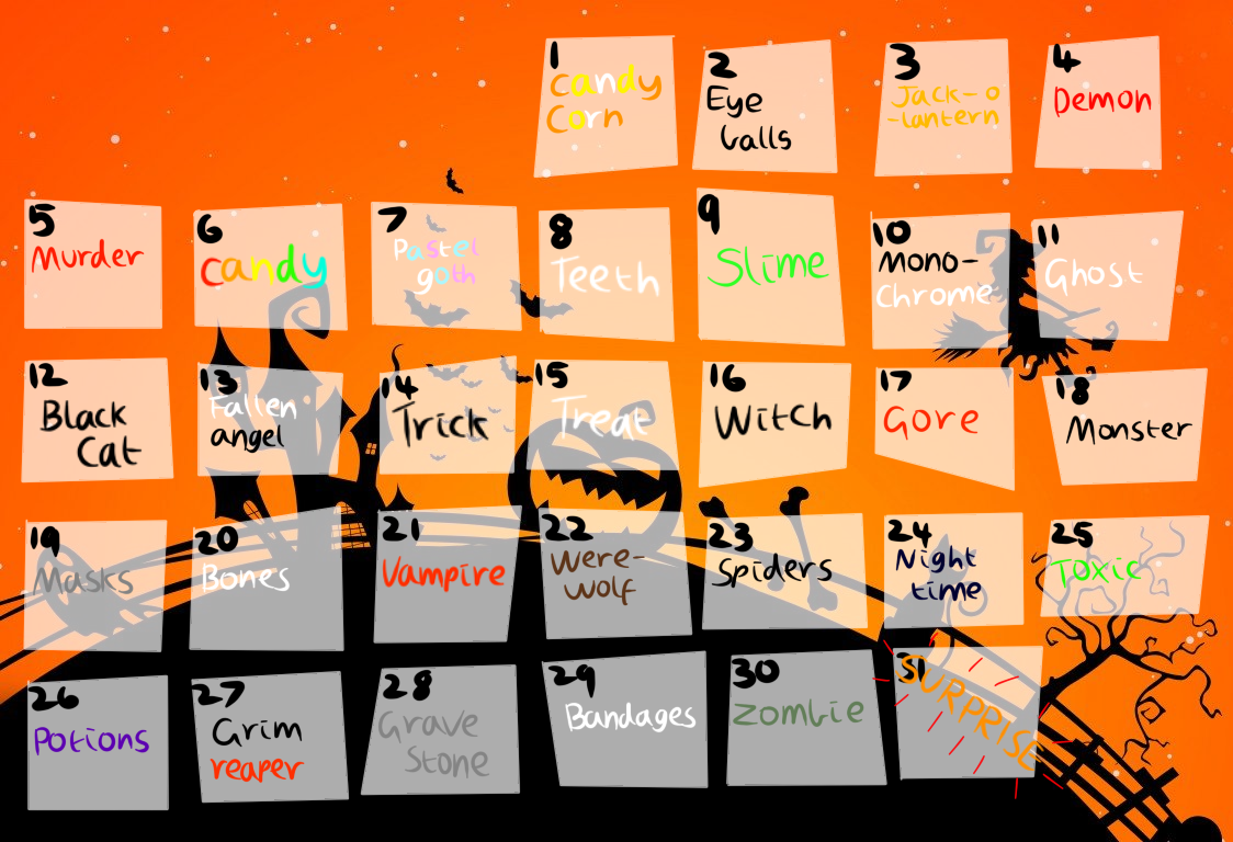 Halloween Calendar Drawings Halloween ART Advent Calendar by AlphaaCrest on DeviantArt: Fortunately, you can now take the countdown to October 31st quite literally thanks to Halloween-inspired Advent calendars. The fun tradition just got even more so, now that children and adults . This means that every work of art is unique and there will never be another identical one. Drawing is a technique of visual representation on a flat support. The term “drawing” designates both the .