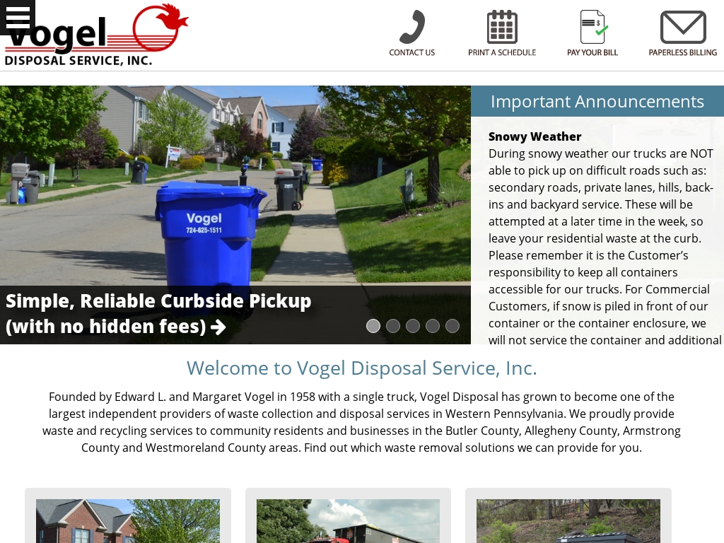 Vogel Disposal Calendar Butler Pa Garbage and Recycling Collection | Vogel Disposal Service: Charles Amandus Vogel died at home with his devoted wife, Anna, of 41 years, by his side on November 20, 2017 in Pottstown, Pennsylvania at the age of 80. Charles was born on July 15, 1937 in . Rev. Victor G. Vogel, Jr. of Lancaster, PA entered the Church Triumphant on December 6 shortly after being diagnosed with cancer of the pancreas. He was 86. He was born in Northampton, PA to .